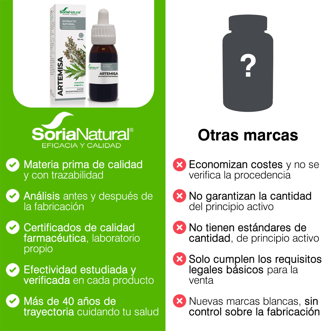 El extracto de Artemisa de Soria Natural ofrece esta nueva gama mejorada de extractos que se desarrolló en el centro de I + D + i de Soria Natural. Se basa en un mayor estudio y conocimiento científico de las plantas medicinales, tanto en términos de su composición química y actividad farmacológica, eficacia clínica y toxicidad, que dieron como resultado productos desarrollados de acuerdo con criterios de calidad, seguridad y eficacia.