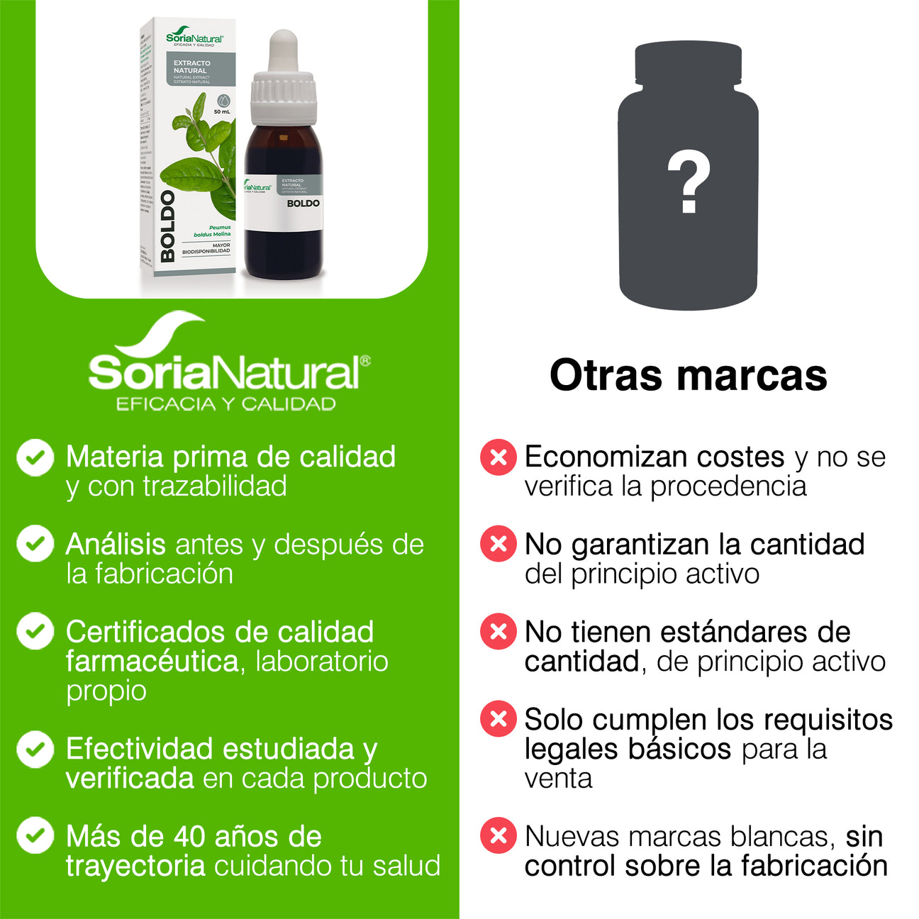 Extracto de Boldo de Soria Natural ofrece esta nueva gama mejorada de extractos que ha sido desarrollada en el centro de I+D+i de Soria Natural. Se basa en un mayor estudio y conocimiento científico de las plantas medicinales, tanto de su composición química, como de su actividad farmacológica, eficacia clínica y toxicidad, lo que ha dado como resultado unos productos desarrollados bajo criterios de calidad, seguridad y eficacia.