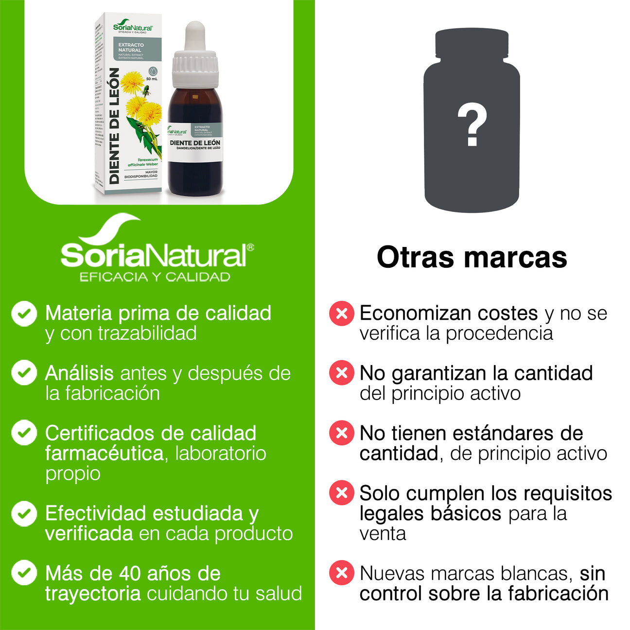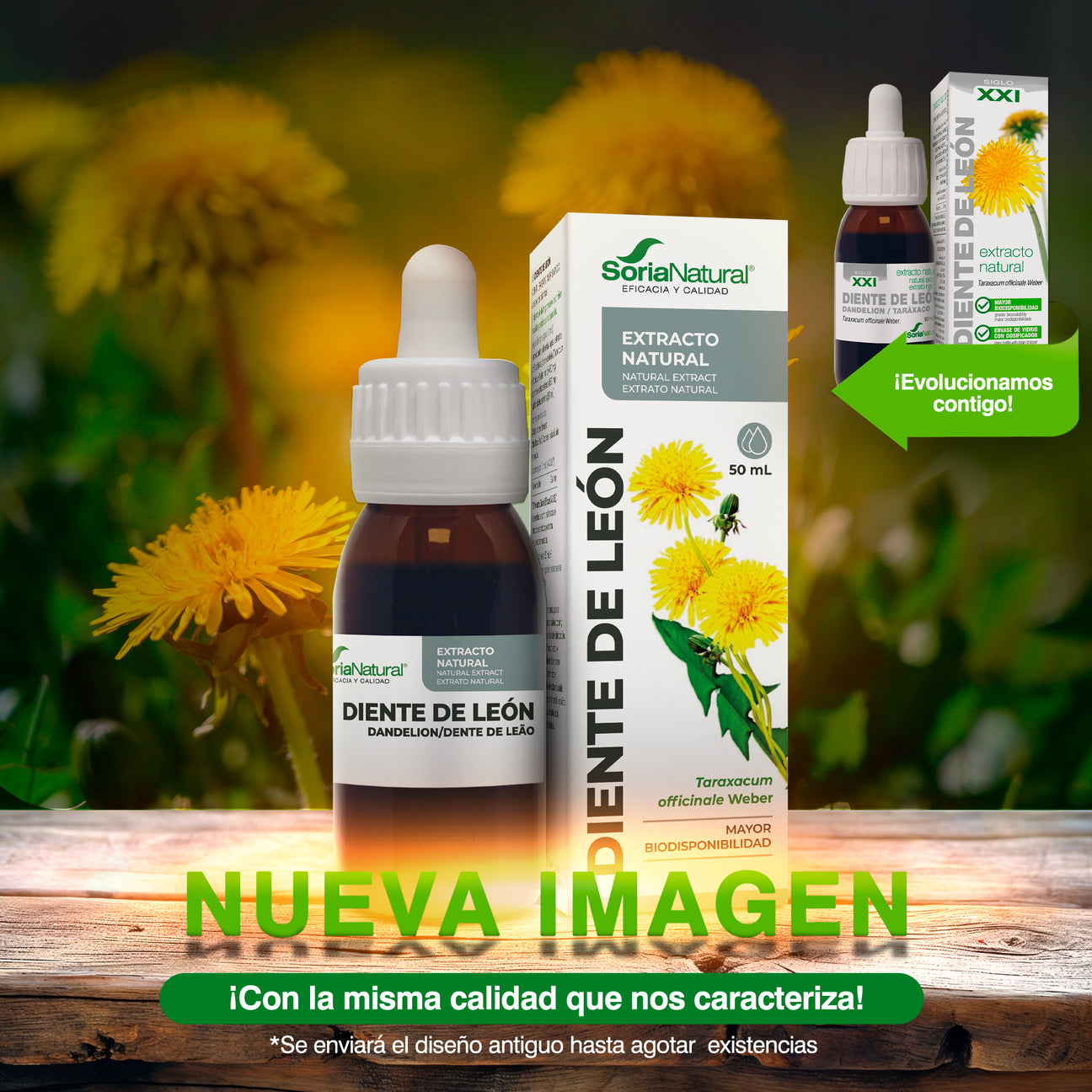 Extracto de Diente León (Fórmula XXI) de Soria Natural ofrece esta nueva gama mejorada de extractos que ha sido desarrollada en el centro de I+D+i de Soria Natural. Se basa en un mayor estudio y conocimiento científico de las plantas medicinales, tanto de su composición química, como de su actividad farmacológica, eficacia clínica y toxicidad, lo que ha dado como resultado unos productos desarrollados bajo criterios de calidad, seguridad y eficacia.