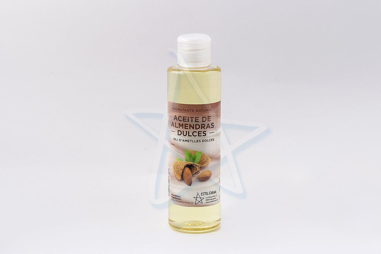 Posologia: Su uso es externo, como suavizante y protector de la piel como emoliente para las manos cortadas como aceite para después del baño, con el fin de compensar el desengrasado excesivo de la piel, como consecuencia de la aplicación de geles y jabones espumantes. También se utiliza como suavizante de la piel tras las depilaciones.\ El aceite de almendras dulces, templado, para hacer baños de uñas quebradizas y demasiado resecas.\ Puede ser usado, también, como bronceador natural.