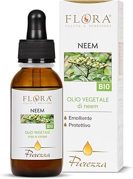 Indicaciones: Es un óptimo aceite vegetal cosmético para el cuidado de la piel. Rico en compuestos fenolicos y sulfurosos, de ácidos grasos polinsaturados y monoinsaturados desarrolla una acción hidratante, protectora, regenerante, eudérmica y restructurante para la piel. Gracias a la presencia de azadiractina, un tetranortriterpeno presente en las semillas, el aceite de Neem es también utilizado para el cuidado de las plantas y los animales de los ataques de los parásitos creándoles un hábitat desfavorable .