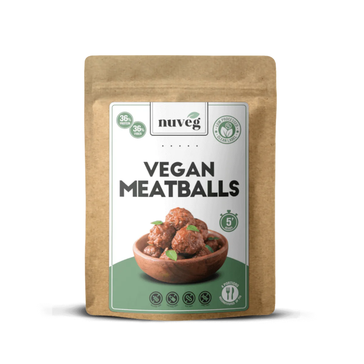Indicaciones: Las Albóndigas Veganas son una sencilla formulación que, tras hidratar y mezclar, se consigue un sustitutivo de la carne con su sabor y textura idóneas para disfrutar de una comida saludable, de una forma rápida y sencilla. Las Albóndigas Veganas a base de proteína Vegetal Texturizada (PVT) de nuveg tiene 36 % de proteína, por lo que una ración de 150 g proporciona 16 g de proteína. Son veganas, de muy bajo procesado, sin gluten, lactosa, sin soja, sin transgénicos, ni otros alérgenos y Clean Label.