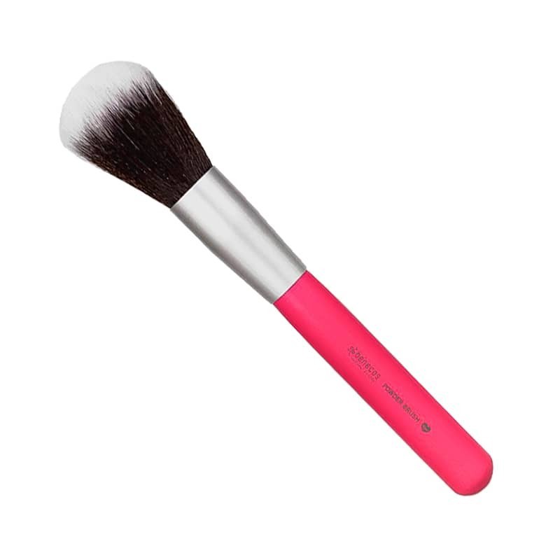Indicaciones: Brocha para polvo de alta calidad con mango de madera de bambú ecológico, piezas metálicas de aluminio reciclado y aplicador de Toray, una alternativa vegana al pelo animal y apto para personas alérgicas.