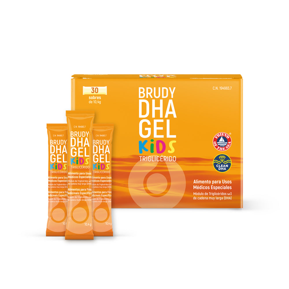 Indicaciones: Emulsión bebible de triglicérido de DHA en forma de gel, edulcorado con fructosa y sabor a naranja. Producto de venta en farmacias, con receta médica.