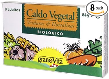 Composicion: Sal marina, grasas vegetales* (grasa de palma*, aceite de girasol*), maltodextrina*, harina de arroz*, vegetales* 4 % (cebolla*, zanahoria*, apio*, calabaza*), extracto de levadura, especias* (cúrcuma*, macis*, levístico*, ajo*, semillas de hinojo*), hierbas* (perejil*, levístico*), zumo concentrado de hortalizas* (zanahoria*, cebolla*), champiñón* 0,5 %.\ \ Valor nutricional por 100 g:\ alor Energético 32 kJ / 8 kcal\ Grasas 0,6 g\ - de las cuales saturadas 0,4 g\ Hidratos de carbono 0,4 g\ - de los cuales azúcares 0,1 g\ Proteínas 0,1 g\ Sal 0,9 g\ \ (*)= Certificado por CH-BIO-004.\ + Contiene apio. Puede contener trazas de leche, gluten, soja, mostaza y huevo.