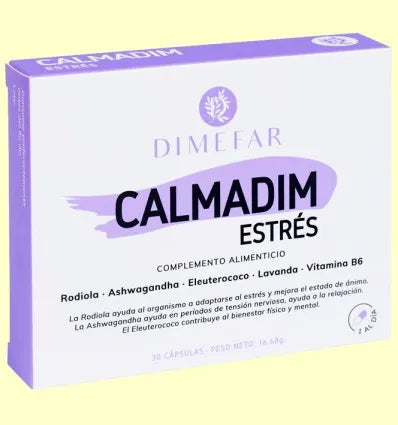 Composicion: Extracto seco de Rodiola Extracto seco de Ashwagandha, extracto seco de Eleuterococo hidroxipropilmetilcelulosa aceite esencial de Lavanda en polvo antiaglomerante (sales magnésicas de ácidos grasos), vitamina B6.\ \ Por 1 cápsula:\ Extracto de Rodiola (Rhodiola rosea L, raíz) 170 mg\ Extracto de Ashwagandha (Withania somnífera (L) Dunal, raíz 125 mg\ Extracto de Eleuterococo (Eleutherococcus senticosus Rupr. Et Maxim, raíz) 125 mg\ Aceite esencial de Lavanda (Lavandula intermedia Emeric ex\ Loisel, partes aéreas) 30 mg\ Vitamina B6 (clorhidrato de piridoxina) 0,21 mg