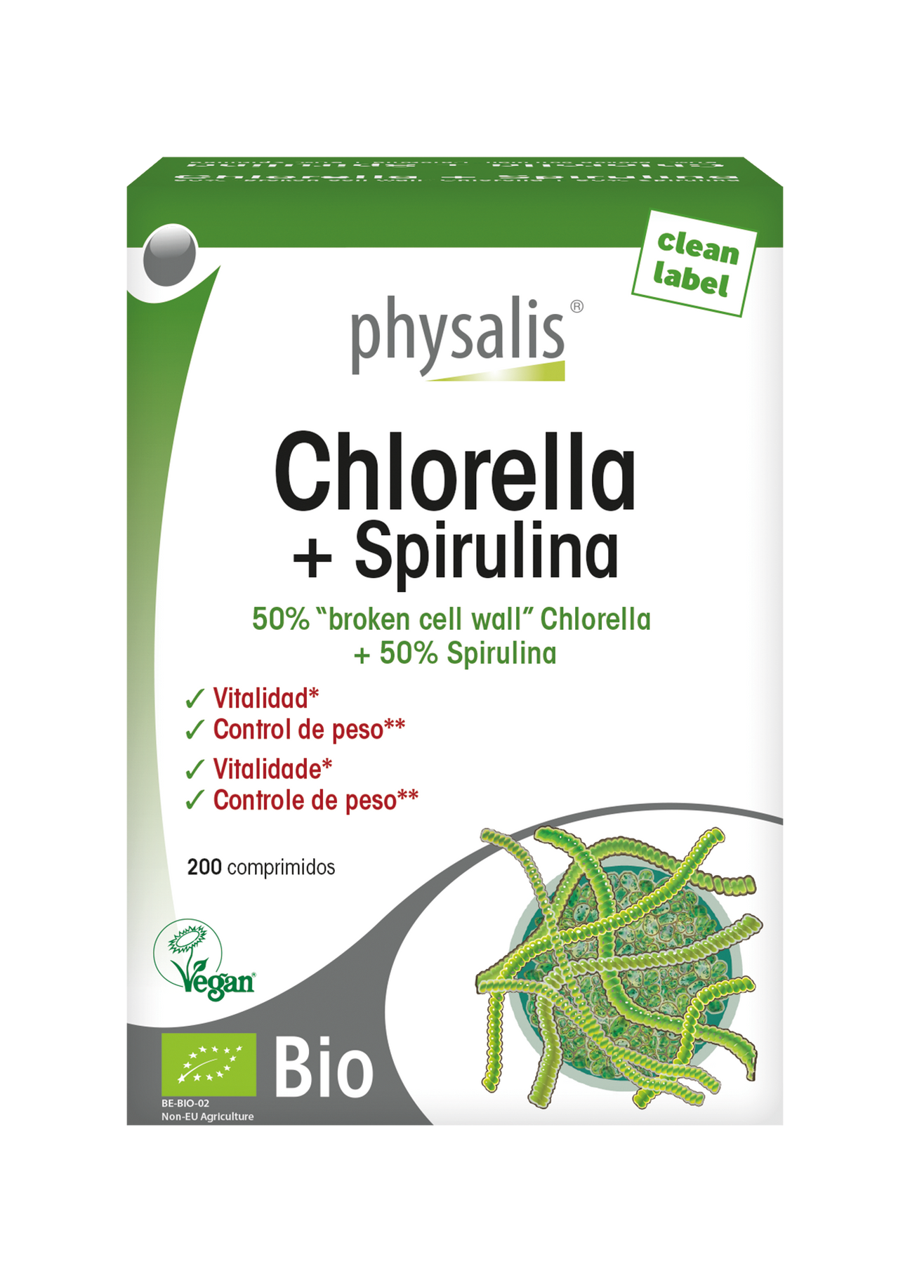 Indicaciones: Sinergia de chlorella y espirulina. La chlorella es un alga unicelular a la que se le atribuyen propiedades relacionadas con la vitalidad. La espirulina puede resultar de ayuda para el control del peso en el marco de un estilo de vida saludable.