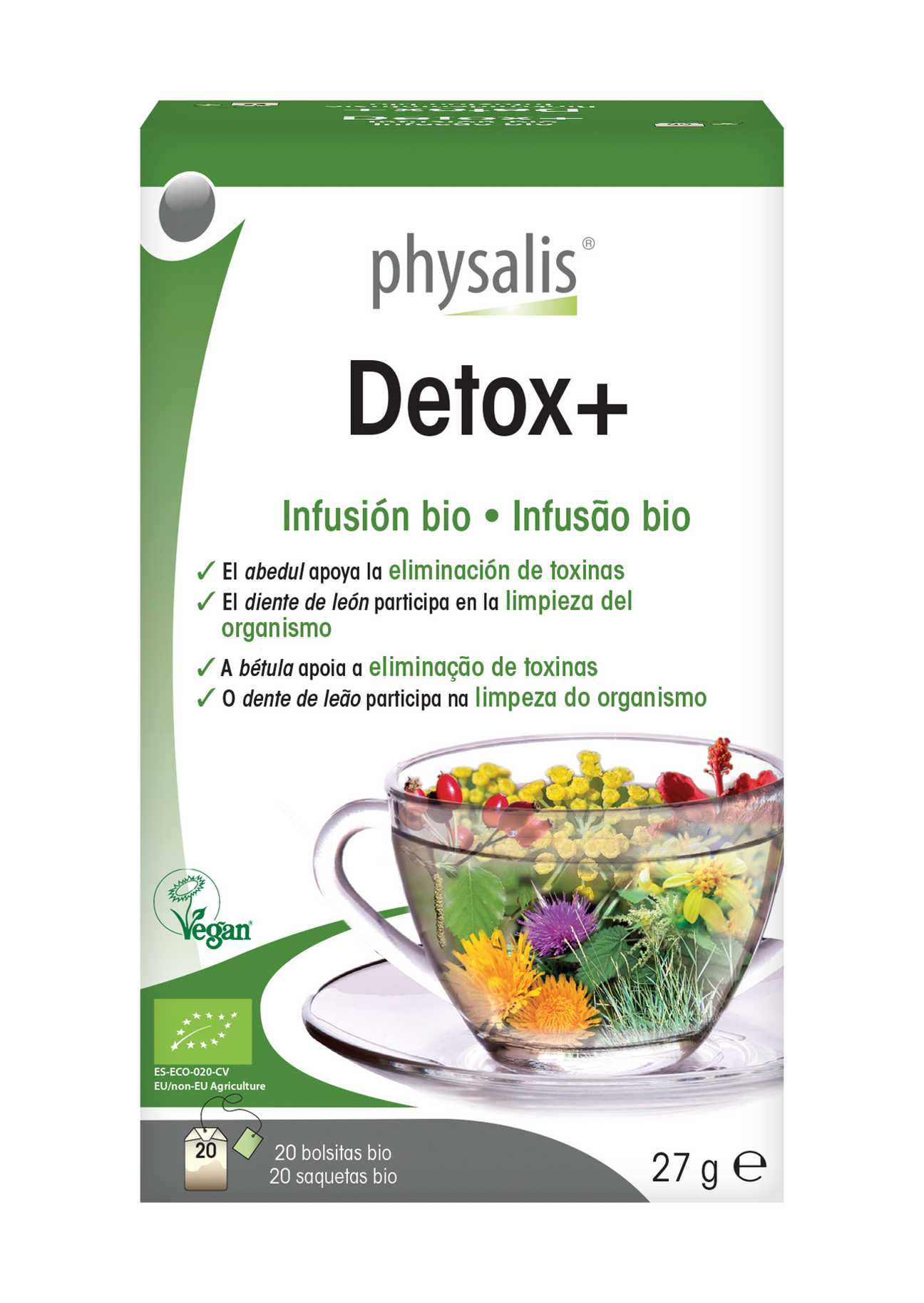 Indicaciones: Infusión de plantas biológicas que contiene abedul, ortiga y vara de oro que contribuyen a la eliminación de toxinas a través del riñón. La grama y el diente de león apoyan el proceso de desintoxicación. El hibisco contribuye a mantener un buen nivel de energía y vitalidad. Sabor suave y agradable.