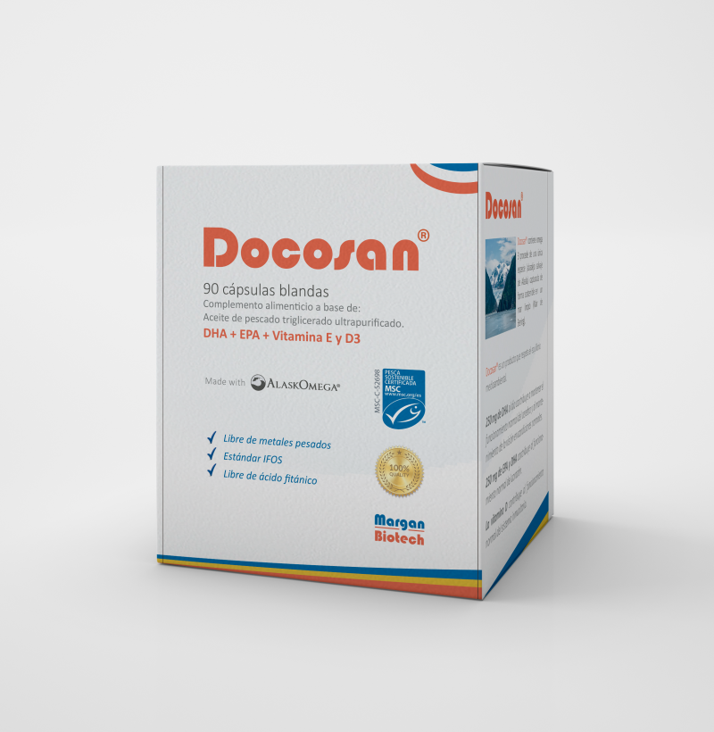 Composicion: Aceite de pescado triglicerado ultrapurificado Agente de recubrimiento: gelatina de pescado, glicerina, agua vitamina e natural (D-alfa-tocoferol), vitamina D3 (colecalciferol).\ \ Por 1 cápsula:\ DHA..............300 mg\ EPA...............50 mg\ Vitamina E......3,3 mg\ Vitamina D3....25 mcg
