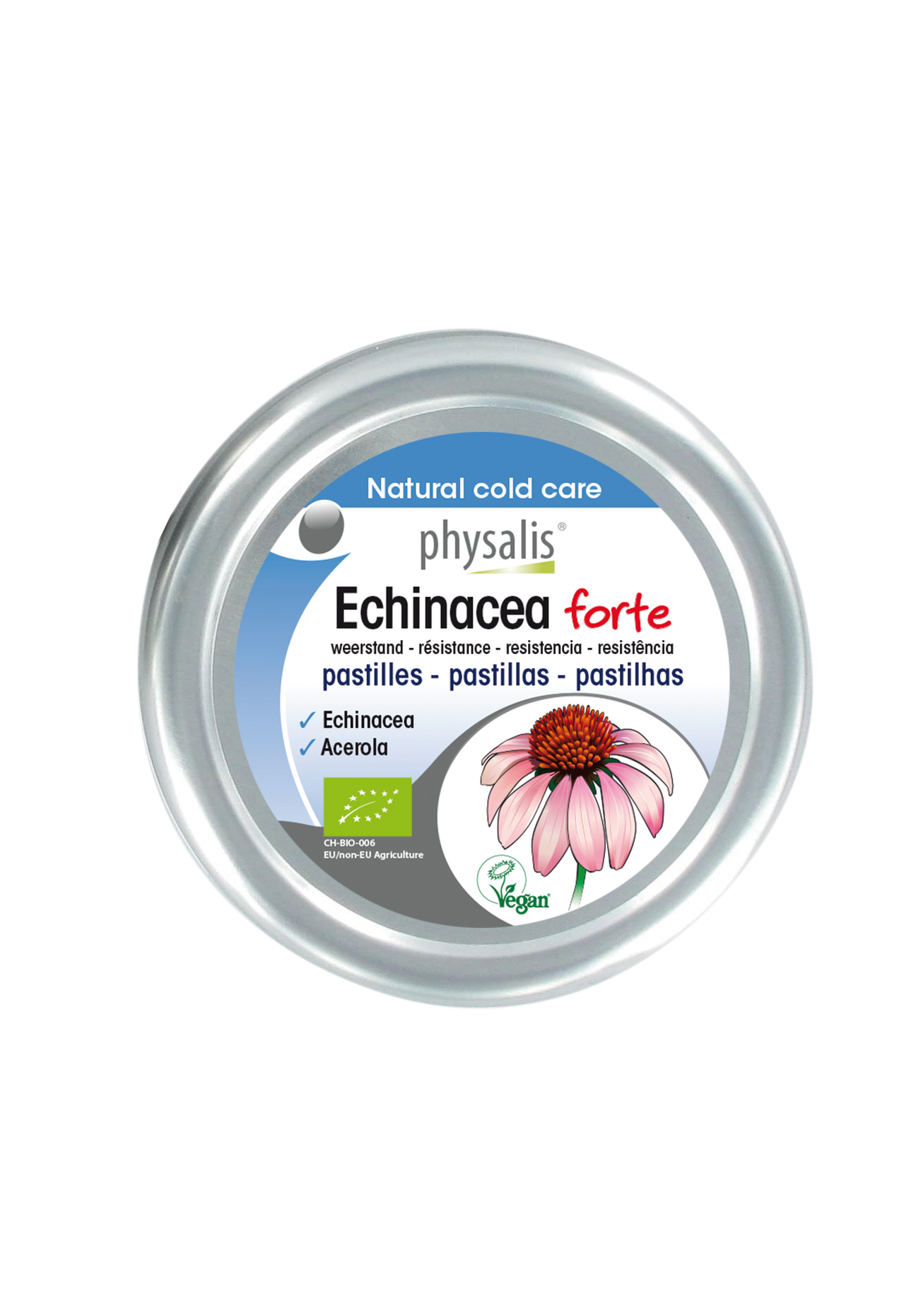 Composicion: Gelificante: goma arábiga*, azúcar*, jarabe de glucosa*, jugo de echinacea purpúrea (partes aéreas floridas)* (3%), extracto de acerola* (2%), extracto de raíces de echinacea de hojas estrechas*(1%), extracto de raíces de echinacea purpúrea* (1%), aroma natural*, desmoldeador: cera de abejas.\ \ (*)= Cultivo ecológico.