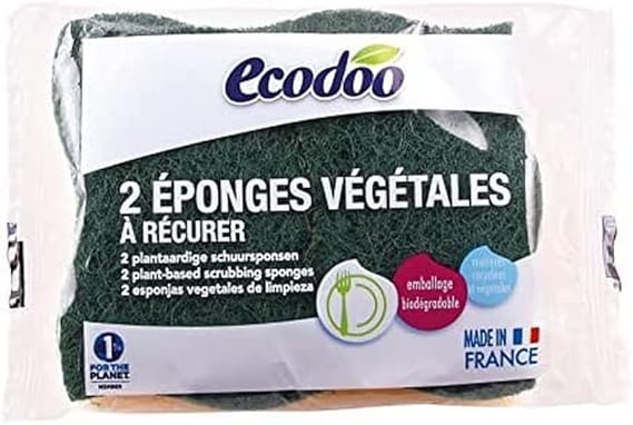 Indicaciones: Esponjas vegetales , flexibles y absorbentes. Presentadas de dos en dos en embalaje de BO PLA totalmente biodegradable, disponibles en cajas de cartón para una mejor colocación en el estante.
