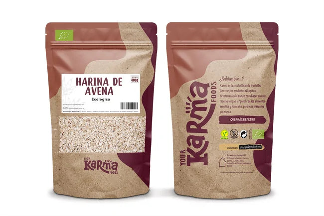 Indicaciones: Harina de avena integral sin gluten, obtenida tras la molienda del grano de avena ecológico.