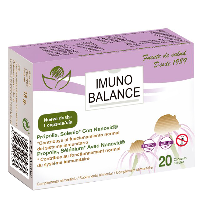 Composicion: Por 1 cápsula:\ Equinácea 300 mg\ Uña de gato 100 mg \ Líquen de islandia 60 mg \ Própolis 50 mg\ Vitamina C 80 mg \ Vitamina B3 16 mg \ Vitamina E 12 mg \ Vitamina B6 1,4 mg \ Vitamina A 400 µg \ Vitamina B9 200 µg \ Vitamina D 5 µg \ Vitamina B12 2,5 µg \ Zinc 4,3 mg \ Cobre 1mg \ Selenio 55 µg \ Nanovid® 1mg