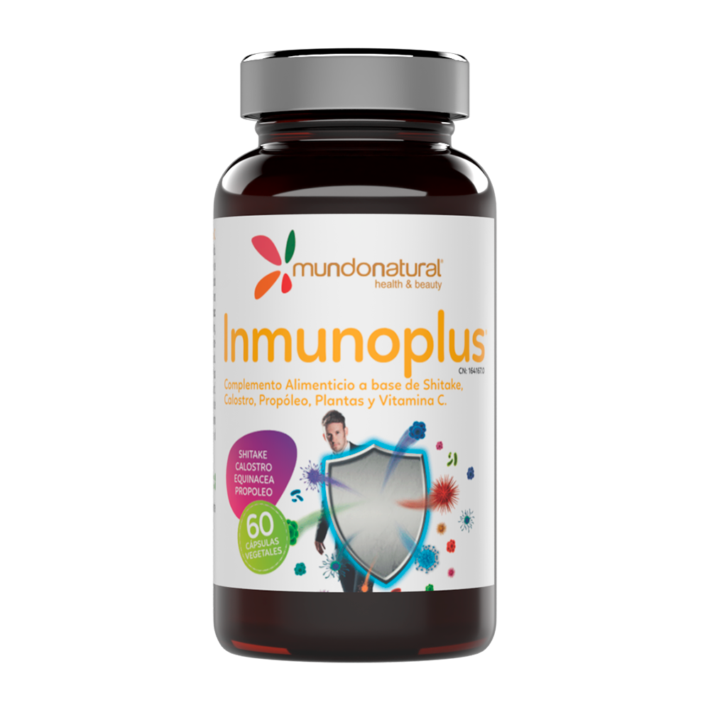 Composicion: Por 2 cápsulas:\ Shitake (Lentinula edodes (Berk) Pegler. – 6% polisacáridos): 400 mg.shiitake\ Calostro (bovino): 400 mg.\ Goji (Lycium barbarium L. – 50% polisacáridos): 400 mg.goji\ Equinácea (Echinacea angustifolia DC. – 3% Polifenoles): 150 mg.Equinácea\ Equinácea (Echinacea purpurea L. Moench. – 3% Polifenoles): 150 mg.\ Propóleo: 100 mg.Propóleo\ Pomelo (Citrus x paradisi Macfad. – 3,5% Bioflavonoides totales): 50 mg.pomelo\ Aloe vera (Aloe vera L. Burm. F. – 10% Mucílagos): 50 mg.aloevera\ Vitamina C (Ácido L – ascórbico): 12 mg.vitaminac\ \ Agente de carga (Celulosa micro cristalina). Antiaglomerantes (Estearato de magnesio y dióxido de silicio). Envoltura: Gelatina.