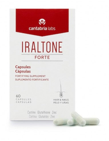 Indicaciones: Gracias a su aporte en L-Cistina, glutatión, vitaminas B5 y B6, cobre y zinc favorece el mantenimiento del cabello y uñas. La vitamina B6 participa en la síntesis de cisteína, aminoácido constituyente de la queratina del pelo y uñas.\ \ Iraltone Forte 60cap es un suplemento alimenticio que participa en la síntesis de la cistina, un componente clave de la estructura capilar, y también ayuda en la absorción y utilización del zinc, otro nutriente importante para ayudar al normal mantenimiento del cabello. La L-cistina y el glutatión son antioxidantes naturales que ayudan a proteger el cabello y las uñas del daño causado por los radicales libres y otros agentes estresantes. Además, el cobre es esencial para la pigmentación del cabello y la piel, mientras que el zinc ayuda en la síntesis de proteínas y en el mantenimiento de los folículos capilares. En conjunto, estos nutrientes clave hacen que Iraltone sea una excelente opción para aquellos que buscan un apoyo para ayudar su cabello y uñas.
