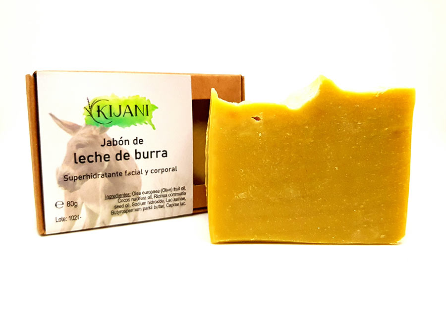 Indicaciones: Jabón de leche de Burra, de espuma muy hidratante y cremosa, reparando la piel dañada. Ideado para limpieza facial y corporal. Presentación en caja de cartón. La leche de burra tiene propiedades ampliamente reconocidas: es intensamente hidratante, con atribuciones regeneradoras y reparadoras de la piel. El proceso productivo del jabón se realiza en frio, sin alterar el ritmo de la saponificación, obteniendo jabones de muy buena calidad, con muy buenas propiedades y una buena hidratación para la piel. Producto de artesanía cosmética ecológico, certificado por BIOINSPECTA, sin parabenos, aceites minerales, colorantes sintéticos ni perfumes de síntesis química.