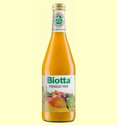 Mezcla de jugos puros obtenidos por prensado directo con un 25% de puré de mango.