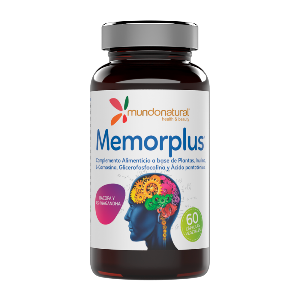 Composicion: Por 2 cápsulas:\ Bacopa (Bacopa monnieri (L.) Pennell, Extracto seco , 20% Bacósidos): 400 mg.\ Ashwagandha (Withania somnifera (L.) Dunal, Extracto seco, 1,5% Whitanoides): 300 mg.\ Inulina: 300 mg.\ Huperizia (Huperzia serrata (Thunb.) Trev, Extracto seco 0,2% Huperizina): 100 mg\ Vinca (Vinca minor L. Extracto seco 4:1): 100 mg\ Lecitina de soja (Glycine max (L.) Merr., 90% Fosfocolina: 100 mg.\ L-Carnosina: 100 mg.\ Ácido pantoténico (D-Pantotenato de calcio, 92,5%): 6,5 mg.\ Maltodextrina 47,28 mg\ \ Antiaglomerante: Estearato de magnesio y Dióxido de silicio. Cápsula: Gelatina y Colorante (E-171).