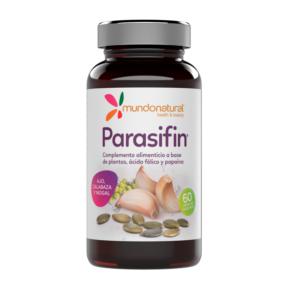 Composicion: Por 2 cápsulas:\ Extracto seco de Ajenjo (Artemisia absinthium L., ratio 10:1) 200 mg, Extracto seco de Ajo (Allium sativum L., 1% Alicina) 200 mg, Clavo en polvo (Syzygium aromaticum (L.) Merr. et L.M. Perry) 100 mg, Extracto seco de Calabaza (Cucurbita pepo L., ratio 10:1) 100mg, Extracto seco de Tomillo (Thymus vulgaris L., ratio 5:1) 50 mg, Extracto seco de Nogal (Juglans regia L., ratio 10:1) 50mg, Papaína >6000 usp/mg 50mg, Antiaglomerantes (Estearato de magnesio y Dióxido de silicio) y Ácido fólico (Ácido pteroilmonoglutámico) 30 µg. Cápsula vegetal (Agente de recubrimiento (Hidroxipropilmetilcelulosa) y Colorante (Concentrado de espirulina)).