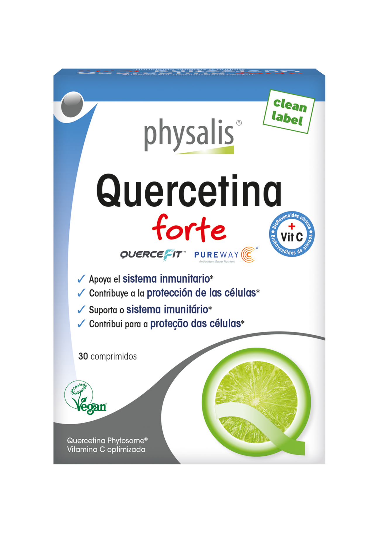 Indicaciones: Sinergia de alta calidad con Quercetina Phytosome ® (Quercefit®) y vitamina C en una matriz optimizada (PureWay-C ®) que se absorbe mejor y más rápido que otras formas tradicionales de vitamina C. La vitamina C contribuye al normal mantenimiento del sistema inmune y a la protección de las células frente al estrés oxidativo. Producto vegano.