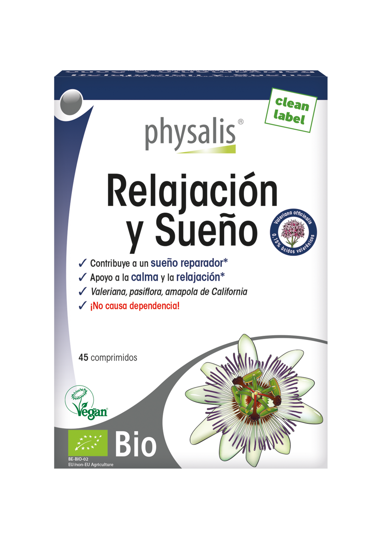 Composicion: Por 2 comprimidos:\ Eschscholzia californica extr. bio (5/1) ...................................300 mg\ Passiflora incarnata extr. bio (>3,5% flavonoides)...................400 mg\ Valeriana officinalis extr. bio (0,05-0,1% valerenic acids)..........500 mg