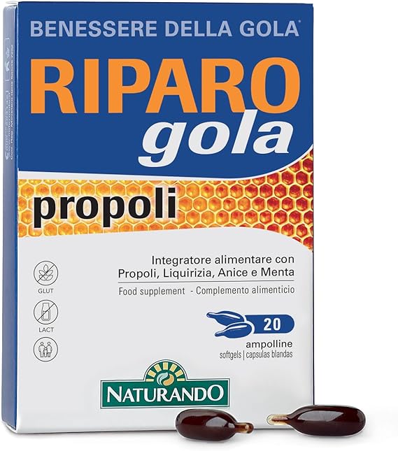 Composicion: Aceite de soja, Propóleo e.s. (Propolis), Regaliz raíz e.s. (Glycirrhiza glabra L.), Espesante: Mono y diglicéridos de ácidos grasos Emulsionante: Lecitina de soja Anís a.e. (Pimpinella anisum L.), Menta a.e. (Mentha x piperita L.). Envoltura: Gelatina, Agentes reafirmantes: Glicerol.\ \ Por 4 perlas:\ Propóleo e.s. 360 mg \ Regaliz e.s. 240 mg \ Menta a.e. 68 mg \ Anís a.e. 68 mg