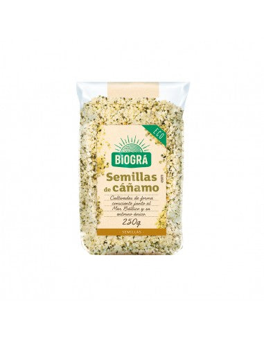 Composicion: Semillas de cáñamo (100%)*\ \ Valor nutricional por 100 g:\ Valor nutricional: 2557KJ / 617 kcal\ Grasas: 52,3 g\ Saturadas: 5,5 g\ Monoinsaturadas: 5,7g\ Poliinsaturadas: 38,8 g\ Hidratos de carbono: 1,1 g\ Azúcares: 1,1 g\ Fibra: 2,1 g\ Proteínas: 35 g\ Sal: 0,1 g\ Magnesio: 620 mg\ Hierro: 13,4 mg\ Zinc: 9 mg\ \ (*)= Procedente de cultivo ecológico.\ + Elaborado en una fábrica que utiliza derivados lácteos, huevo, gluten, soja, sésamo, frutos secos de cáscara y apio.
