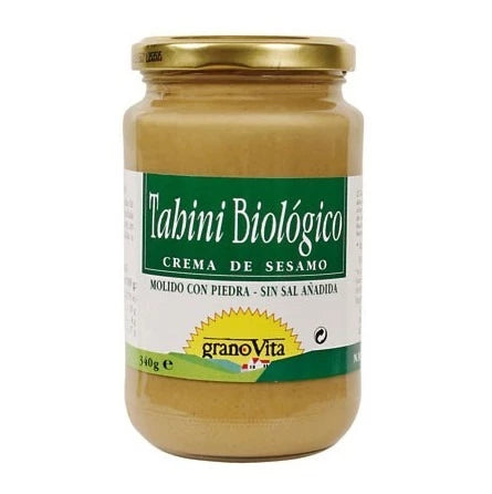 Indicaciones: Tahini ecológico, sin gluten. Se elabora en molino de piedra para mantener los nutrientes y el sabor natural de las semillas de sésamo aportando una textura cremosa. Contiene azúcares naturalmente presentes.