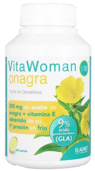 Indicaciones: Suplemento a base de aceite de onagra y vitamina E obtenido de su primera presión en frío. Aporta GLA.